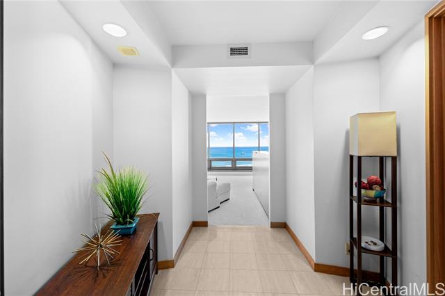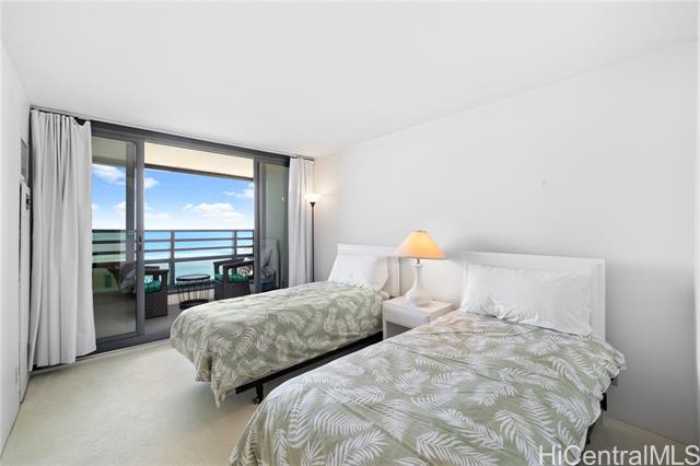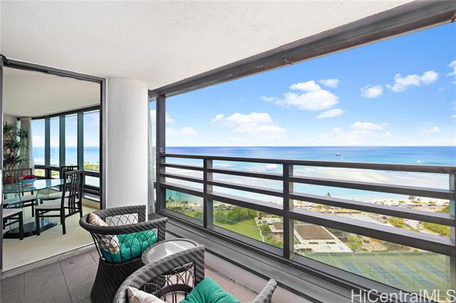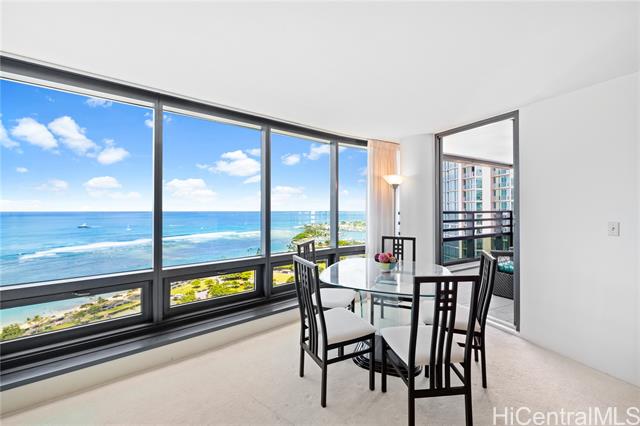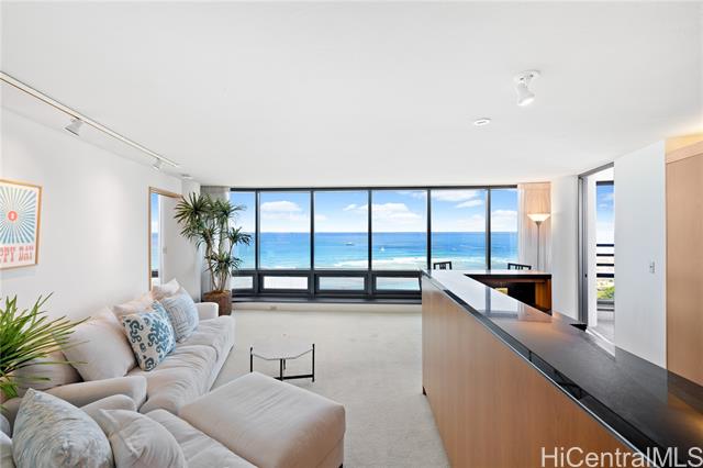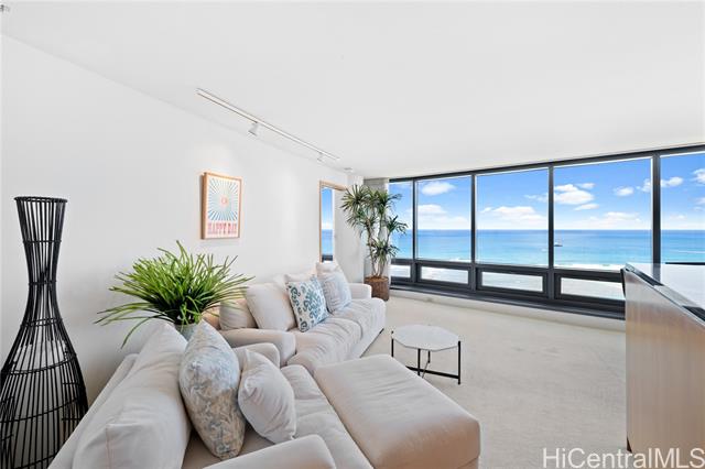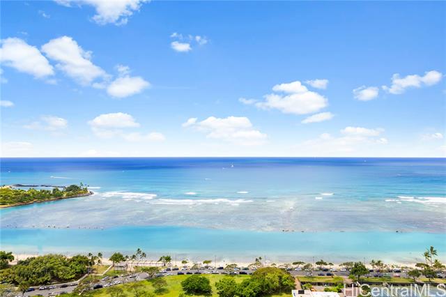 - Very desirable high floor unit with fabulous ocean view! Enjoy the parallel, unobstructed, breathtaking view as you enter. Ocean and park view from each room. The spacious room has an ideal layout with privacy, with the living room and kitchen in the center and the primary bedroom and 2nd bedroom on either side. The building offers 24 hr security , ample guest parking, storage, tennis court, pool, etc. Located just across from Ala Moana beach park and only a few blocks to dining, shopping, and entertainment spots. The property is priced below its property assessment value. The price is firm and will be sold " As Is".
