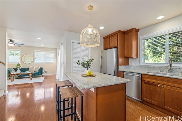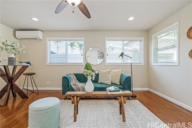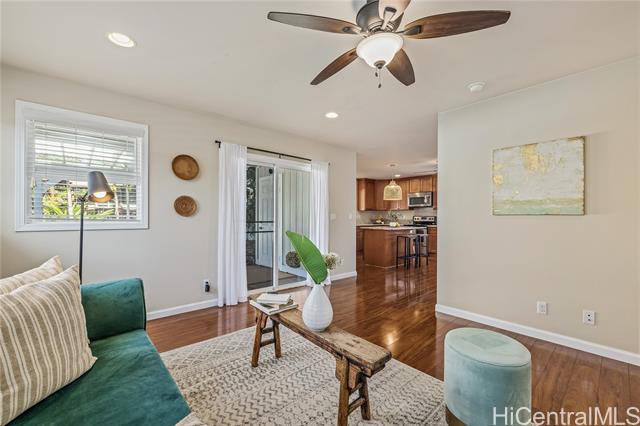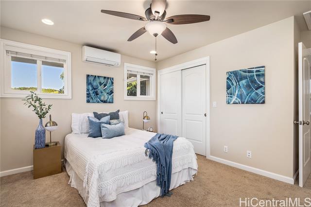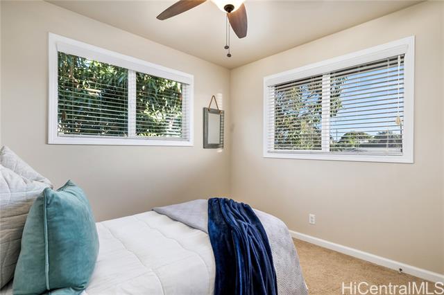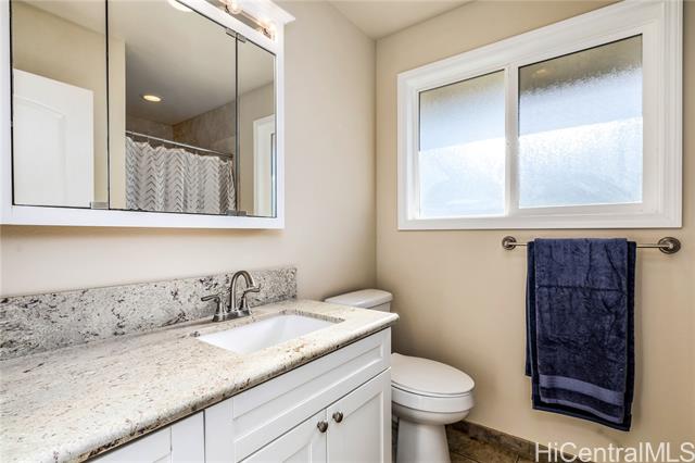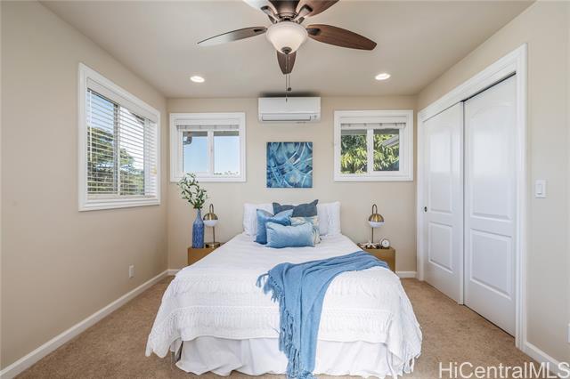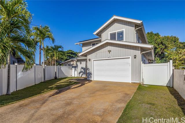 - Welcome to the North Shore—where privacy, style, and island sophistication converge. Tucked away at the end of a quiet cul-de-sac just minutes from Haleiwa Town, this refined 3-bedroom, 2.5-bath residence offers a rare blend of modern comfort and laid-back luxury. Built in 2015, the home showcases quality finishes throughout, including rich wood cabinetry, travertine tile in the primary bath, and split A/C units in every room. 14 owned newly installed solar panels. Step inside to an immediate sense of calm, where abundant natural light and oversized windows frame views of the lush backyard, creating a seamless indoor-outdoor living experience. The expansive terrace, enhanced by a custom pergola, is ideal for elegant entertaining or tranquil evenings. Upstairs, enjoy serene views of majestic mountains. The thoughtfully designed layout features a spacious primary suite with en-suite bath and his-and-hers closets. A large garage provides generous storage. Ideally located near Schofield Barracks, shopping, dining, and some of Oahu’s most celebrated beaches. This home delivers modern island living.