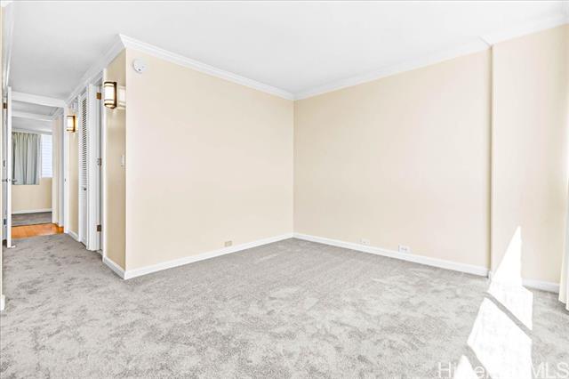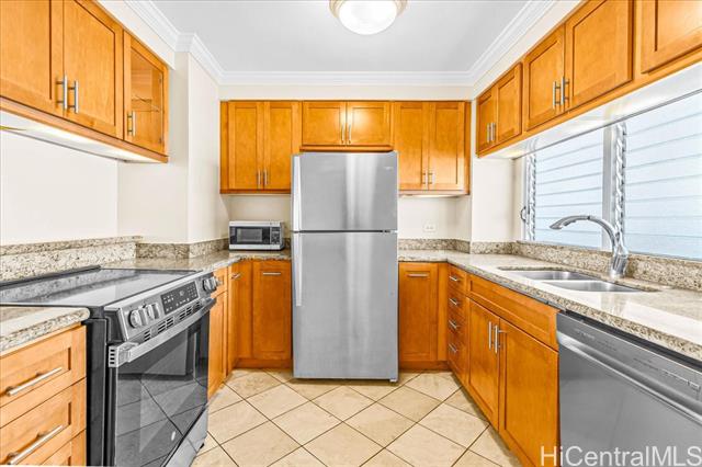 - Beautifully updated and move-in ready high-floor 2-bedroom, 2-bathroom unit offering 981 square feet of interior living space, plus a spacious balcony with Diamond Head, city, and mountain views. This residence in the Banyan Tree Plaza features flooring, crown molding, and popcorn ceilings fully removed. Recent improvements include fresh interior paint, new carpeting in both bedrooms, and new drapery installed December 2025. The kitchen has been upgraded with recently installed stainless steel appliances and the unit comes with in unit washer/dryer, completing the modernized interior. A major value-add is the fully paid-off plumbing replacement loan assessment, providing added peace of mind. The building is VA approved, enhancing financing flexibility. Conveniently located near Ala Moana Shopping Center, University of Hawaii, various schools, easy highway access for commute and close proximity to Kapiolani Medical Center. Building amenities include a swimming pool, BBQ area, newly refurbished recreation room, gated parking, multiple guest parking stalls and 24-hour security. Vacant and easy to show.