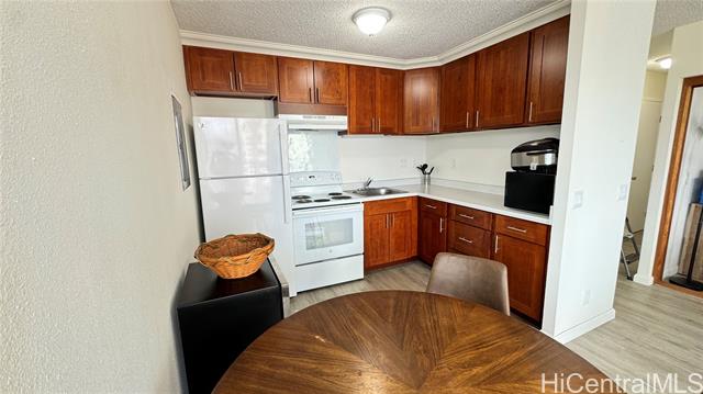 - Rare opportunity to own a top-floor, corner end unit featuring 2 bedrooms and 1.5 bathrooms, highlighted by an extra-large lanai spanning the entire length of the unit. Enjoy refreshing trade winds and peaceful Manoa mountain views, creating a calm and comfortable island lifestyle. The interior was fully renovated in 2021 and has been meticulously maintained, offering a move-in-ready condition. The all-inclusive maintenance fee covers electricity, hot water, water, and sewer, providing excellent value and predictable monthly expenses. This secured building offers gated entry and secured parking, ensuring peace of mind. The assigned parking stall is conveniently located on the ground level, providing easy access. A car wash area located next to the parking stall allows you to keep your vehicle clean at any time. Ideally situated near the University of Hawaii, with shopping, dining, and daily conveniences just minutes away. Close proximity to the freeway also makes weekend getaways and island exploration effortless. This property offers the perfect balance of comfort, convenience, and long-term value.