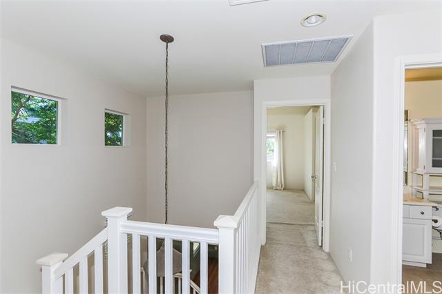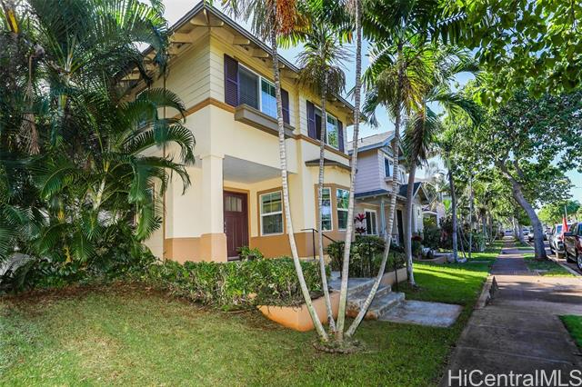 - Welcome to your island retreat in the desirable Ocean Pointe community! This well-maintained, move-in-ready home features 29 owned photovoltaic panels under the most favorable Net Metering program for exceptional energy savings, along with a solar water heater and central AC for year-round comfort. The layout includes a spacious living area, a separate dining room, and a kitchen with a breakfast nook. Upstairs, the primary ensuite offers a dual-sink vanity and walk-in closet, accompanied by two additional bedrooms and a built-in work or study area. Enjoy the private fenced backyard with extended covered lanai—perfect for relaxing or entertaining. Additional highlights include keypad entry, Nest thermostat, ceiling fans throughout, newer carpet (2022), interior paint (2022), and washer (2023), new ceiling fans in the living room, dining room, and lanai (2024). New dishwasher and garage door opener (2025). Detached two-car garage, and ample street parking. Ideally located near parks, schools, restaurants, and beaches, this Ocean Pointe home blends modern comfort with the best of island living.