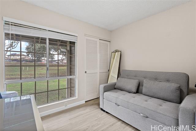 - Welcome to Royal Palm at Waipio! Step right into this cozy 2 bed, 1 bath condo with a thoughtful layout and 1 parking. This home is perfect for those who need a move-in ready unit as it has brand new vinyl flooring throughout, new washer and dryer, and brand new window ACs, ceiling fans, and blinds in the living room and bedroom. The freshly painted bathroom features new ceramic tile, shower head, and a new toilet. In the kitchen, you will find a new over the range microwave, new GFCI outlets, new pullout trashcan, and new garbage disposal. This beautiful home also has a spacious lanai with a peaceful view and no other units behind you. If commute is important to you, this home is very centrally located between several cities. You are about 15 minutes from Schofield Barracks/Wheeler Army Airfield and JBPHH, and 20 minutes from Tripler Army Medical Center. Schedule a tour today! OPEN HOUSE SUNDAY FEB 15, 2026 FROM 2-5PM!