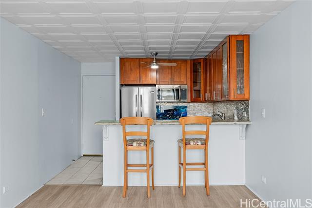 - BEAUTIFUL home tucked away on a one-way street in the heart of Waikiki. This Fee simple, 1-bedroom, 1-bathroom opportunity comes with 1 covered parking in a secured building with an onsite manager. Stone countertops, wood cabinetry, fresh interior paint, and laminate floors. Waikiki Lanais is a secured high-rise building with short distances to Waikiki Beach, surf spots, International Market Place, brand new 2 story grocery store, and Kapiolani Park at the base of Diamond Head. Maintenance fees includes: electricity, gas, (hot) water, sewer and common areas. VA approved & pet-friendly (2 pets not to exceed 25 pounds) building. Fully insured for hurricane coverage. 'Other Fee' of $52.99 a month covers Cable TV and internet.