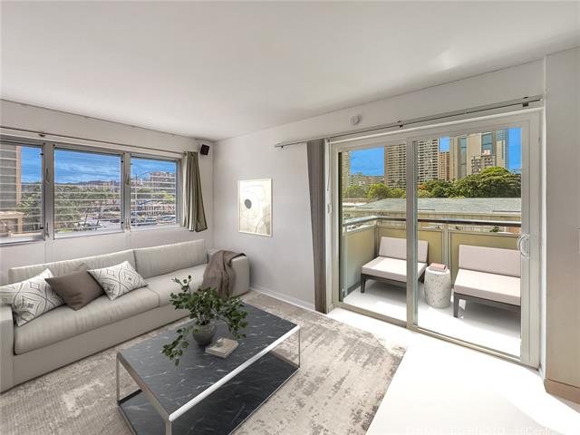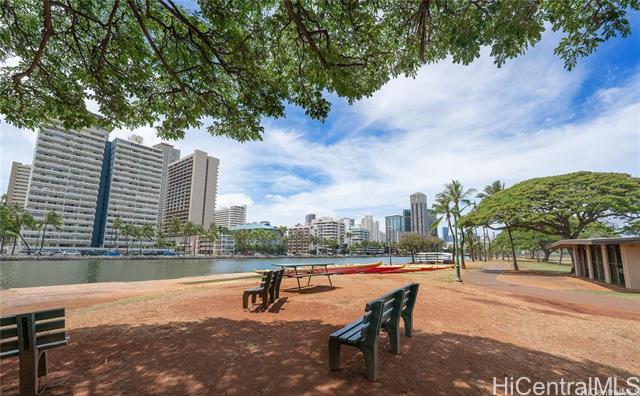 - Own a piece of paradise at the Ala Wai Cove. This rare boutique condo is perfectly situated across the canal from Waikiki and down the street from the University of Hawaii, Iolani School, H-1 Freeway and much more. There’s a proposed upcoming Ala Wai bridge project that would provide you with ease to Waikiki and its beautiful beaches. This cozy low-floor two bedroom unit features 705 sqft of interior space, a spacious 93 sqft open lanai and the bonus option of being able to walk up some stairs to your unit from your deeded parking stall rather then taking the elevator. Step inside this corner unit to discover an open living space with abundant natural light that fills every room to showcase the contemporary finishes while blending island-inspired elegance and modern comforts. The large beautiful new kitchen, flooring, sliding glass door, window and split AC’s add extreme value to this already wonderfully designed unit. Attention to detail and pride in this renovated home is refreshing.
