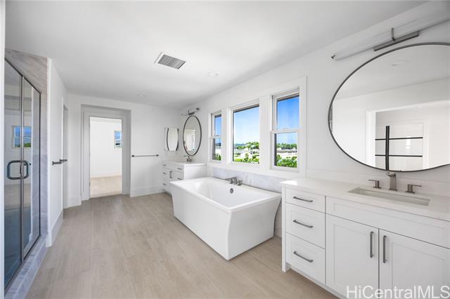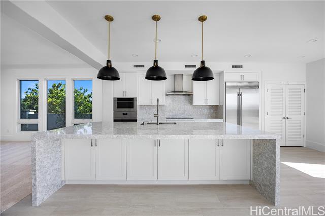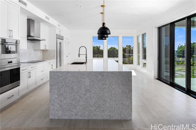 - Experience coastal luxury in this expansive new construction single-family home offering over 4,100 square feet of thoughtfully designed living space. The Naupaka (Lot 97- 75.30 BR) floorplan features 5 bedrooms, 5.5 baths, a loft, private retreat, covered lanai, and a 2 car plus 1 car garage—ideal for relaxed living and elevated entertaining. Enjoy panoramic ocean views and upscale features including central AC, a 120 gallon solar water heater, and accommodations for a PV solar electric system and EV charger. The gourmet kitchen is equipped with Sub Zero and Wolf appliances, a 42” built in refrigerator, 36" frameless induction cooktop, built in convection oven, drop down microwave oven, and a Bosch Energy Star dishwasher. Professionally landscaped front and rear yards with automatic irrigation complete the seamless indoor-outdoor lifestyle. Kekainani at Hoakalei | One of the final 32 luxury residences in the prestigious Kuapapa neighborhood. Limited-time offering on selected residences: $20,000 Design Credit and a one-year Hoakalei Country Club Dining Membership.