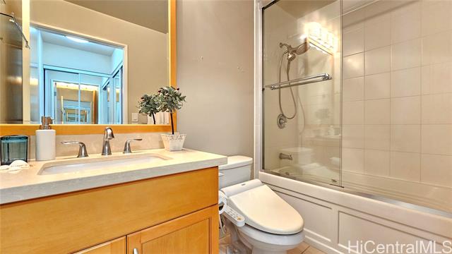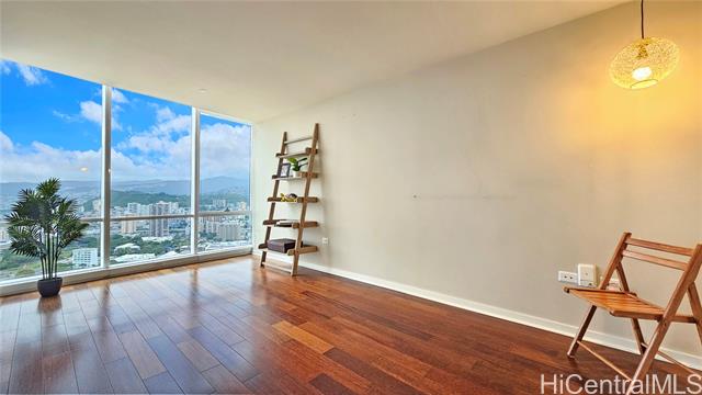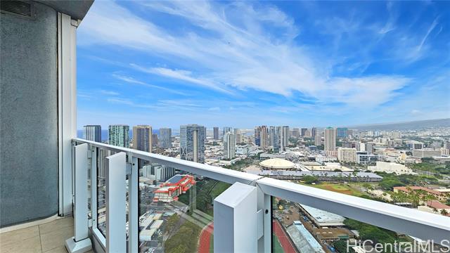 - Real penthouse - no unit above! This 2-bedroom, 2-bath, 2-parking penthouse unit features extra-high ceilings and the floor-to-ceiling glass windows that offers beautiful mountain, city, and Honolulu Harbor views without strong afternoon sun! The seller seldom used the central AC. Small, but nice to have some open lanai for fresh air and to enjoy those lovely views. The two tandem parking stalls are spacious and conveniently located near the elevators. Beautiful Engineered hardwood floors throughout. Enjoy an array of amenities, including BBQ area, exercise room, large pool, theater, kids' playground, tennis/pickleball court, putting green, 24-hour security, and more. Moana Pacific is pet-friendly and has 100% hurricane insurance coverage. Residents and the staff are very welcoming and friendly. The location is exceptionally convenient - close to the world-famous Ala Moana Center, Ala Moana Beach Park and the beach, H-1 On/Off ramps, and Ward Village (Whole Foods, movie theaters and restaurants). Enjoy the breathtaking views from your home on the 48th floor!