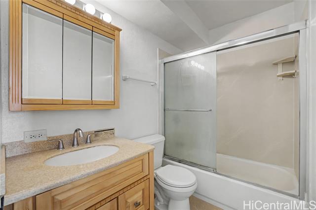 - The upgraded kitchen features lots of cabinet space, providing excellent storage and making meal prep easy and enjoyable. The bright living area opens to a large private lanai, where you can relax and take in the awesome views of Pearl Harbor—perfect for morning coffee, evening breezes, or entertaining guests. The apartment also includes a private storage locker, offering valuable extra space for bikes, seasonal items, or additional belongings. Convenience is a standout feature of this home. Located directly across the street from Pearlridge Shopping Center, you’ll enjoy easy access to shopping, dining, and daily essentials. The property is also close to restaurants, Pali Momi Medical Center, and the rail station, making commuting and errands effortless. Additionally, the unit is located within the Pearlridge Elementary School district. Property is in good condition but is being sold "As IS".