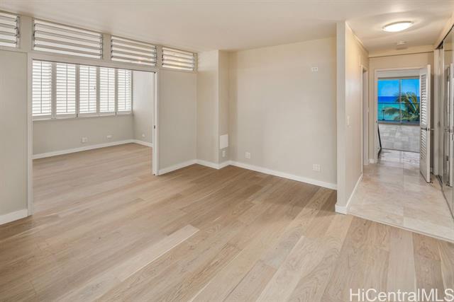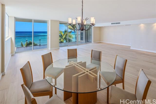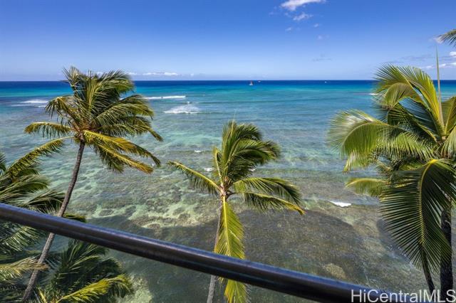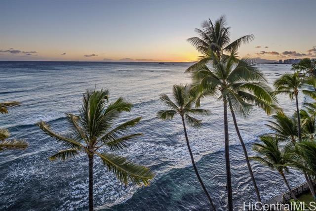 - Direct Oceanfront apt in one of the most desirable, luxurious buildings on the Gold Coast overlooking famous surf spot from living area, and Diamond Head from each bedroom. Only two apts per floor. Apt. 7B has 2 bdrms, 2 baths, plus spacious office/media room or den. Storage in building and A/C in apt. Brand new floors throughout recently installed. In addition to covered, gated garage parking for all owners, the front deck has 14 guest parking spaces. Entrance lobby has video call-up and keyed elevator. Resident manager on site. Private and quiet, but in close proximity to parks and Waikiki. Pet friendly building.