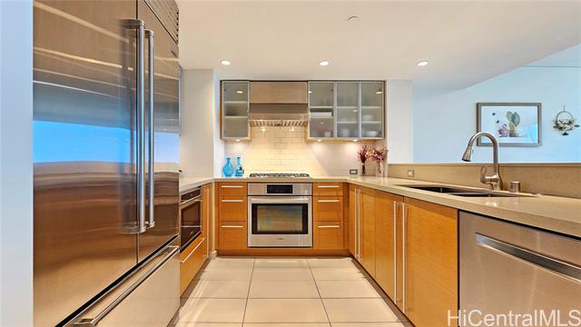 - BEST 3 Bedroom 2 Bath Value IN KAKAAKO! Experience Luxury living in most desirable location where all the action is. Wonderful place to live & enjoy life. Excellent condition w/extensive upgrades throughout. Wood flooring and 100% wool carpet. Living room shutters. Roll down shades. The modem kitchen is appointed with Quartz counter tops. Top of the line appliances. Sub-Zero refrigerator, Bosch oven, Bosch gas cooktop, Bosch Drawer Microwave & Bosch dishwasher. Full size LG Washer & Dryer. 2 Washlet-equipped toilets. Owner maintained and took care of the unit in immaculate condition. Shows pride of ownership. Spacious open floor plan with a bright living area that flows to a lanai, perfect for relaxing and taking in the views and fresh Island breezes. Conveniently located Two side-by-side parking stalls on 3rd floor same as lobby level. Great amenities include heated salt water pool plus whirlpool, two tennis courts, putting green, BBQ areas and dog park. Pet friendly bldg. Large Party room, small meeting room. Conference room, theater room, billiards room, guest suite & car washing area. Close to beach parks, shopping malls, theaters, Foodland Farms, Whole Foods & restaurants.