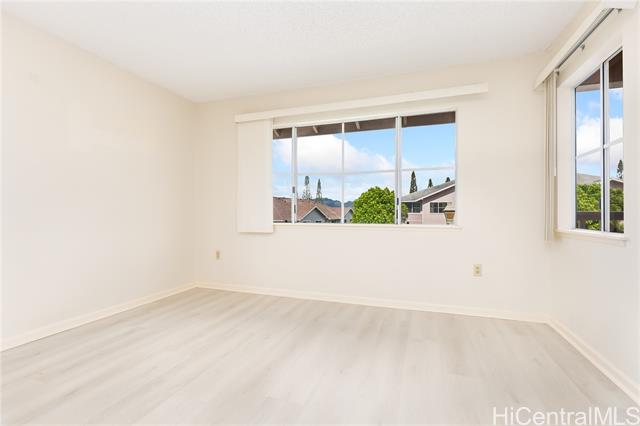 - MOTIVATED SELLER and WILLING TO NEGOTIATE! 2024 new Luxury Vinyl Plank Flooring! Fresh Interior Paint! Move In Ready! What are you waiting for? Do Not Miss this rarely available 3-bedroom, 2 bath townhomes at Northpointe Terrace 1 in the highly sought after community of Mililani Mauka. This 2nd Floor, CORNER UNIT is boasting with 1001 sf of living space. Enjoy this renovated home which backs onto green space and has a beautiful park and playground just across the street from the complex entrance. The stacked washer/dryer discreetly complements the functional layout, adding convenience to daily living. Two designated parking stalls, with one right outside your door along with a guest parking beside it. Very close to Mililani Mauka Elementary and only minutes away from shopping, dining, and public transportation. Centrally located for favorable commute times and easy access to the H-2 freeway and Schofield & Wheeler military bases. Take advantage of Mililani Town Association's many amenities including recreation centers, pools, playgrounds, tennis courts, basketball courts, skate park and more!!