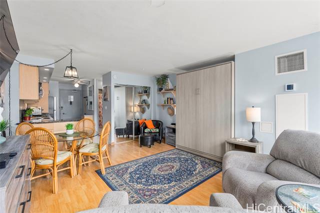 - NEW LISTING!! Enjoy island living in this well-appointed studio/1 bath unit at Ilikai Marina. Take in peaceful city & mountain views and cool trade winds from your private lanai—your own serene retreat in the heart of Waikiki. The unit features an updated kitchen and bathroom, hard surface flooring throughout, and a modern Murphy bed for efficient, flexible use of space. Unbeatable location close to beaches, dining, shopping, and all that Waikiki has to offer. Flexible to be a primary residence, second home, or investment opportunity. Must see to appreciate!