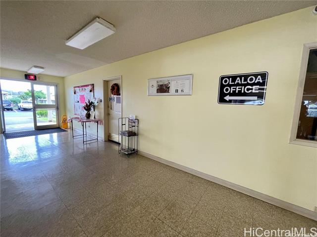 - A seniors' paradise in Mililani Mauka! Olaloa is a gated community for residents 55 years old and older. (No age restriction for owners.) This one-bedroom, one-bathroom, well-maintained unit is in a preferred 1-story building with no neighbors above. The community laundry is steps away from the unit, but the hall closet has water & electric hookups for a stackable washer/dryer. The community center features a gym, library, and thrift shop, as well as various exercise groups, music classes, and social clubs. The garden club is available for green thumbs who wish to have their own garden plot to grow vegetables, flowers, and other plants. Olaloa is close to the bus line, parks, shopping, and restaurants. Vacant and easy to see.