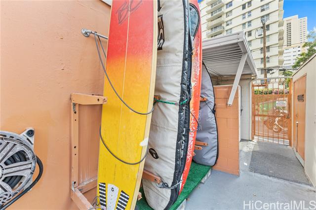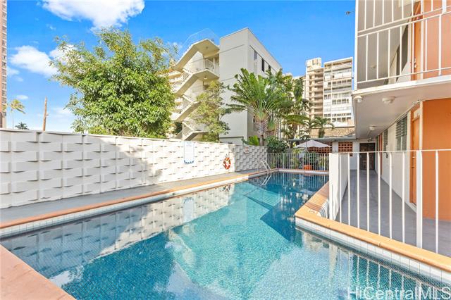 - Step into your move-in-ready escape in the heart of Waikiki-just one block from the beach and Kapi'olani Park. This thoughtfully renovated one-bedroom condo at Hawaiian Crown offers quality upgrades and an unbeatable location. Interior improvements include smooth skim-coated walls and ceilings, tile flooring throughout, a tiled lanai with baseboard siding, and a window A/C unit. The bathroom is clean and modern with floor-to-ceiling tile. A deeded parking stall included - a valuable asset in Waikiki. Hawaiian Crown is a secured building featuring a heated pool, common sitting area, surfboard rack, community laundry, and a convenience store on-site. Pet-friendly (verify house rules). Whether you're looking for a low-maintenance beach home or an investment opportunity in one of Waikiki's most walkable neighborhoods, this condo offers comfort, design, and prime location.