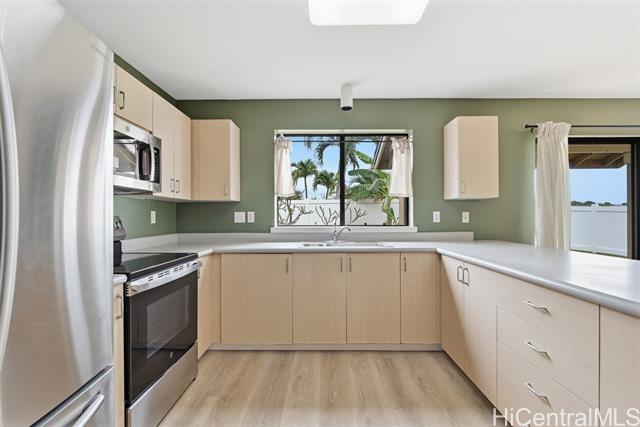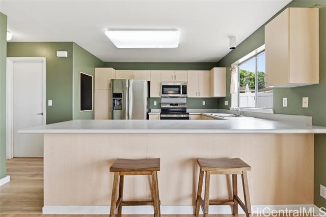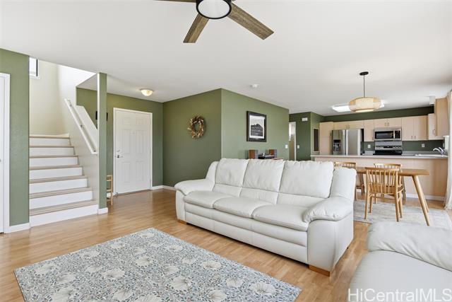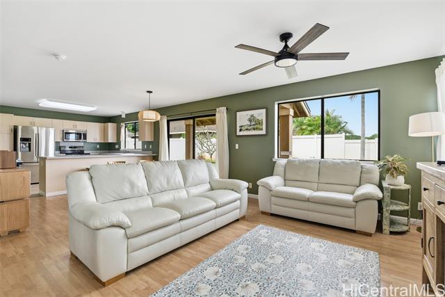 - Tucked at the end of a quiet cul-de-sac in Royal Kunia, this 4-bedroom, 2.5-bath rim lot home offers privacy and open mountain views with no rear neighbors. Inside, the home has been well maintained and thoughtfully updated, creating a clean, move-in-ready space. The flexible four-bedroom layout provides room for guests, a home office, or growing households, and the 2.5-bath floor plan keeps daily life efficient and functional. The fully fenced backyard captures the breeze and offers space to relax or entertain. Located in the Royal Kunia community near parks, recreation areas, and everyday conveniences, this home combines comfort, privacy, and a practical layout in a desirable setting.