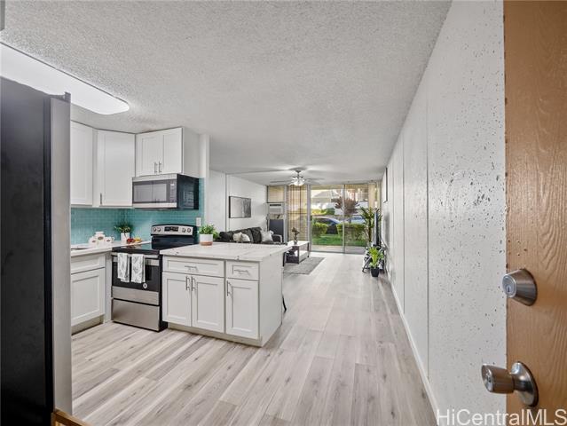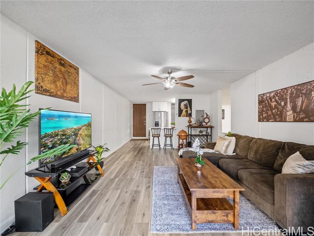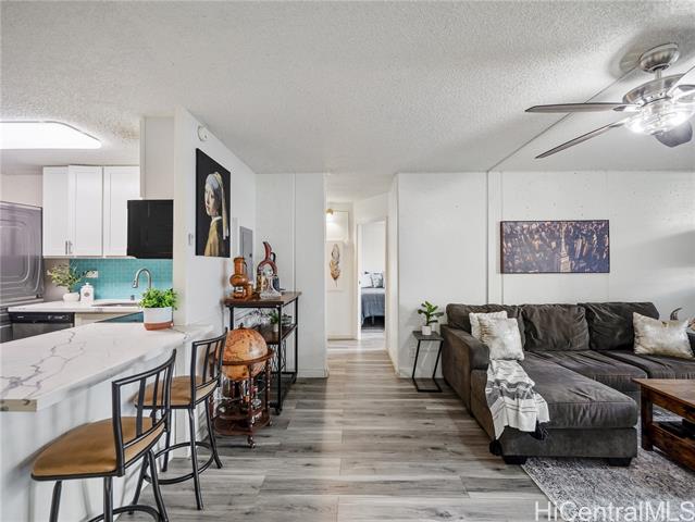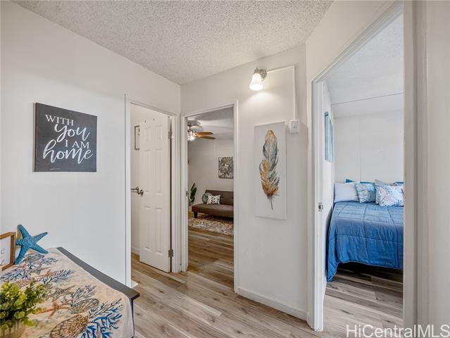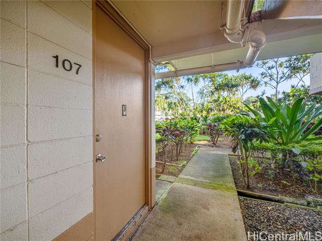 - Welcome to this ground-floor corner residence in Cathedral Point at Melemanu Woodlands, offering 2 bedrooms, 1 bath and 799 sq ft of comfortable living space. Renovated in 2020, the home features vinyl plank flooring, quartz countertops and a beautifully finished travertine shower for a clean, modern feel. A rare highlight is the presence of two lanais — one covered and one open — creating flexible outdoor spaces not typically available on upper levels and allowing convenient access from both the front entry and lanai side. The unit includes a full-size washer and dryer and a covered parking stall located just around the corner for added convenience. Community amenities include a pool, recreation area, park and nearby playground. Conveniently located near Wheeler Army Airfield, Schofield Barracks, shopping, dining and H-2 freeway access, offering an easy central Oahu commute.