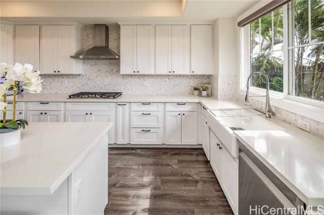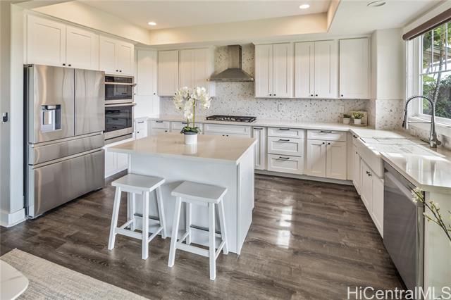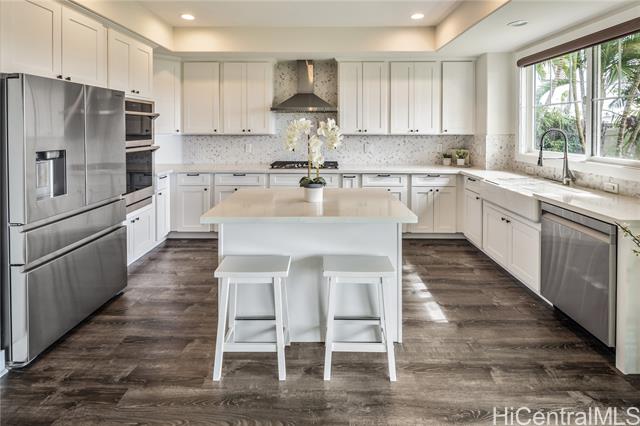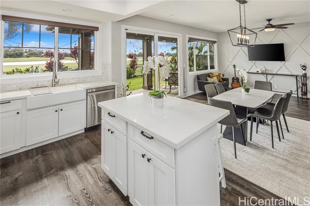 - Absolutely stunning and rarely available, this 4-bedroom, 3-full-bath residence has been impeccably upgraded from top to bottom in 2022. Perfectly positioned overlooking the 7th hole of the Hawaii Prince Golf Course, the home offers breathtaking sunset views and a tranquil, year-round breeze that enhances its serene, resort-like setting. Step into a beautifully redesigned interior featuring a brand-new modern gourmet kitchen, fully renovated bathrooms, and extensive upgrades throughout. The custom pantry with wine bar adds both style and function, while NEW central AC ensures comfort in every room. The tropical backyard is landscaped and equipped with an automatic sprinkler system, creating a lush outdoor retreat ideal for relaxing or entertaining. Energy efficiency is maximized with 32 owned PV panels and brand-new battery storage (non-metered)—a tremendous value This exceptional property has no maintenance fees and is truly move-in ready. Experience HALEAKEA living at its finest—modern, refined, and effortlessly elegant. VA assumable at 4.625% with a balance as of Oct of $1,226,804.68.