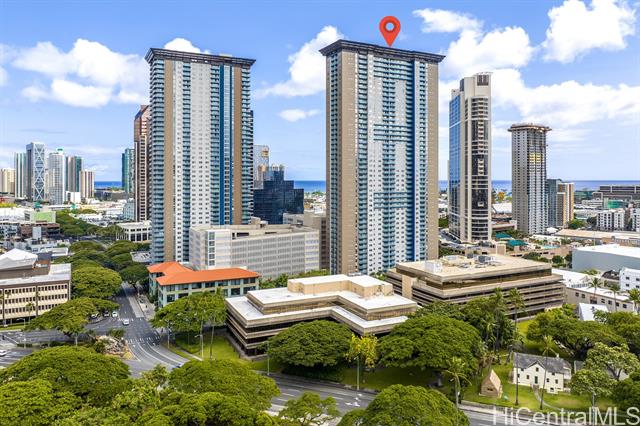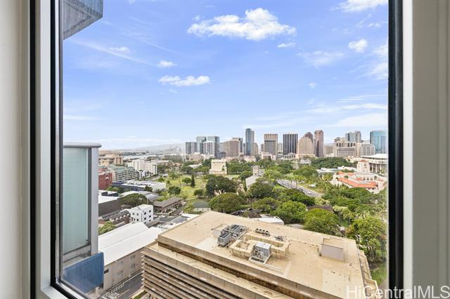 - Rarely available corner-end unit on a desirable mid-level high floor featuring 2 bedrooms, 2 full bathrooms, 2 parking. This thoughtfully designed home captures beautiful mountain, city, ocean & unobstructed Downtown Honolulu views, all enjoyed from your private lanai. Upgraded kitchen features vinyl tile flooring at the entry, upgraded cabinetry, granite countertops. Additional highlights: an in-unit washer & dryer, 3 split A/C for. This secured, well-managed building offers 24-hour security, an on-site resident manager, guest parking, EV charging, a spacious lobby with meeting & recreation areas. Pet friendly. Ideally located on the border of Kaka?ako & Downtown, just minutes from SALT, Ward Village, Ala Moana, dining, shopping, beaches, & entertainment-placing you in the center of Honolulu’s most vibrant & convenient neighborhoods. Whether you are seeking a comfortable primary residence or a strong investment opportunity, this home combines location, views, convenience & low maintenance fees in one of Honolulu’s most dynamic & growing communities. Opportunities to own a corner-end unit with these features & value in this location are limited—this is one you won’t want to miss.