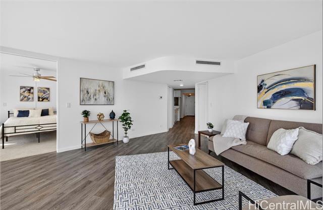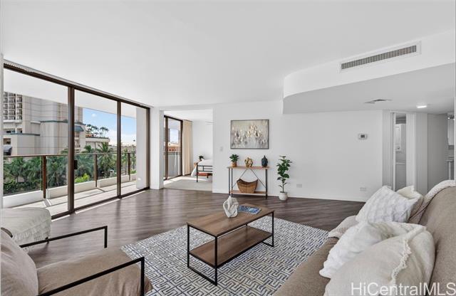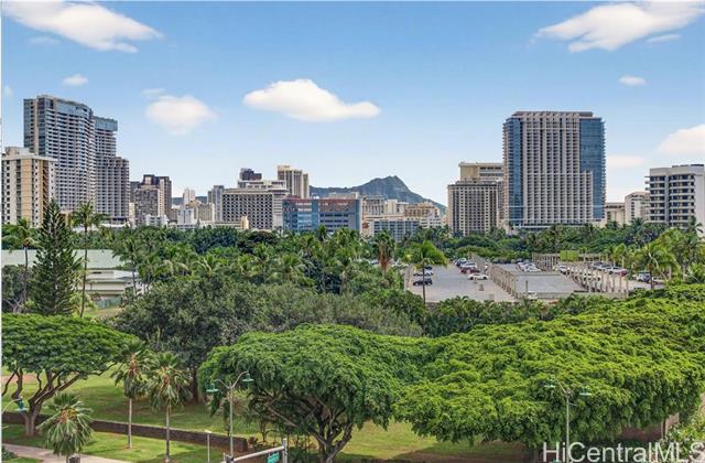 - A MOST EXTRAORDINARY LUXURIOUS CONDO-PRICED TO SELL! Long 44-year LAND LEASE through 11/30/2069. Enjoy gorgeous open panoramic 7th-floor views over Fort DeRussy, Diamond Head, and the Hilton Hawaiian Village from the living Room and bedrooms! Spacious 2-bed/2-bath with 1,331 sq. ft. interior+huge 226 sq. ft. wrap around lanai giving living room, and each bedroom their own private exterior lanai (1,557 total sq.ft.). ALL NEW kitchen cabinets, quartz countertops, new stainless-steel appliances, renovated bathrooms, washer/dryer, and vinyl plank flooring. Convenient new ABC Store on the ground level, restaurants galore downstairs, close to the swimming beach & lagoon at Hilton Hawaiian Village, & a short bus ride to Ala Moana Beach Park and mall. There is more to love about this condo and location - it includes one covered, secured parking stall (Level 3), swimming pool, and large BBQ area w/sundeck. Condo is vacant and easy to show on short notice. Building allows 90 days-or-longer rentals and two pets. $2,081.86/mo. HOA fee; plus $1,361.15/mo lease rent, plus prop tax $196/mo; plus required HO6 condo insurance.