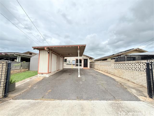 - Discover an excellent opportunity to own a single-level home in Ewa Villages featuring three bedrooms, one-and-a-half baths, and a practical layout that flows easily to the outdoor spaces. This property includes a leased photovoltaic system for energy efficiency. The fully fenced yard and spacious cemented front area are great for parties, gatherings, or extra parking. The home offers a 2-car carport with space for 2 additional cars in the open area, plus ample street parking. Recent upgrades include a new roof and gutters, a newly renovated kitchen, replacement of doors and windows, and a new closet door, adding comfort and modern appeal. With ceramic tile flooring throughout, this home provides a clean and versatile setting in a desirable Ewa location with no maintenance fees.