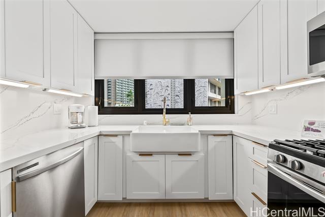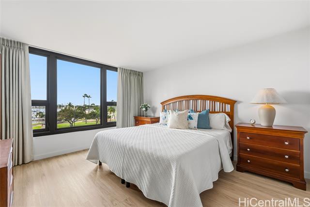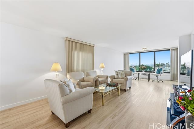 - Experience unbeatable convenience and beautiful yacht harbor and ocean views from this prime residence across from Ala Moana Shopping Center, at the gateway to Waikiki. This spacious 2-bedroom, 2-bath home offers a thoughtful floor plan with the primary suite privately separated from the guest bedroom. Renovated in 2022, it showcases modern finishes throughout, including quartz countertops, upgraded cabinetry, stainless steel appliances, refreshed bathrooms with LED mirrors, and durable luxury vinyl plank flooring. An in-unit washer/dryer, covered parking, and 24-hour security provide everyday ease. Resort-style amenities include a heated pool, tennis/pickleball court, recreation area, storage, secured entry, security patrol, and on-site resident manager. Maintenance fees cover electricity, central AC, gas, water, sewer, cable, internet, common area upkeep, and insurance for common areas—including flood and hurricane protection. Perfectly located across from Ala Moana Beach Park and steps from world-class dining, shopping, beaches, and the energy of Waikiki, this residence offers the ultimate in Ala Moana convenience and lifestyle.