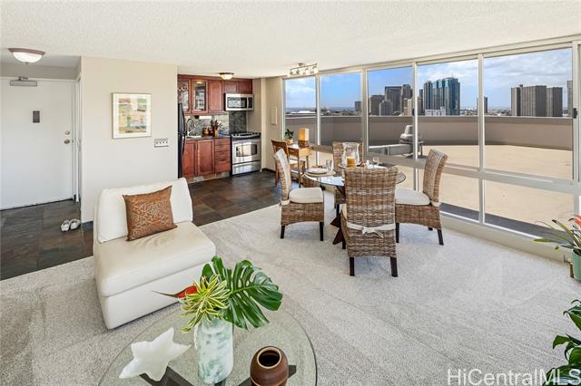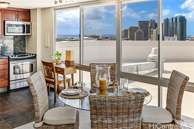 - 180 degree views through an expanse of windows that fill the home with natural light and island breezes. Available for the first time in 17 years, this bright and airy condo exudes a sophisticated yet effortlessly relaxing vibe. Located in a boutique building where units are seldom available moments from Honolulu’s vibrant city center—restaurants, medical facilities, government offices, the state library, art museums, and the concert hall are all within easy reach. Whether you’re looking to live close to work, enjoy arts and culture, or simply cut down on commute time, this home delivers the perfect balance of convenience and comfort. And with views and ambiance like this, you may just find yourself wanting to stay in and savor every moment at home.