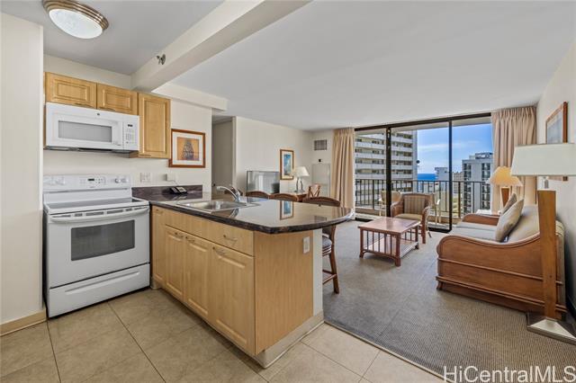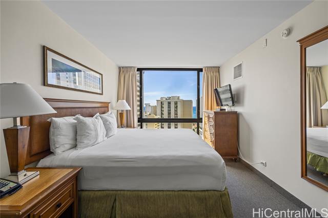 - Discover the perfect opportunity to own a highly sought-after 1-bedroom unit in the popular Waikiki Sunset! This fully furnished hotel unit boasts the largest 1-bedroom floor plan, featuring a lanai and an open living/kitchen layout. Enjoy partial ocean and Diamond Head views! The unit is part of the hotel rental program with Aston Waikiki Sunset and has a NUC (Non-Conforming Use Certificate). Recent hotel upgrades in 2019 include new carpet, fresh paint, and the removal of popcorn ceilings, ensuring a modern and comfortable living space. The building offers great amenities such as BBQ facilities, a pool, community laundry, an exercise room, and 24-hour security. Located in a prime area, you'll be close to the world-famous Waikiki Beach, Kapiolani Park, the zoo, restaurants, shopping, and much more.
