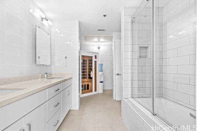 - Welcome to refined, turn-key living at Colony at the Peninsula — one of East O‘ahu’s most sought-after gated communities. This renovated 2-bedroom, 2-bath ground-floor residence in Building 8 features over $100,000 in upgrades and offers a modern, move-in-ready lifestyle. The open kitchen showcases stainless steel appliances, quartz countertops, and a bar-top island, flowing seamlessly into the main living area. Updated flooring and clean lines create a bright, inviting feel throughout. Both bathrooms have been reimagined with sleek finishes, and the spacious primary suite includes a rare private in-unit sauna. Enjoy your 109 sq. ft. lanai with Koko Head views, along with ground-floor access and two covered tandem parking stalls. Set within 43 acres of secure, pet-friendly grounds, residents enjoy two saltwater pools, a fitness center, BBQ areas, walking paths, and lush landscaping. Conveniently located near Koko Marina, Hawai‘i Kai Town Center, Costco, Makapu‘u Beach, and Hanauma Bay.