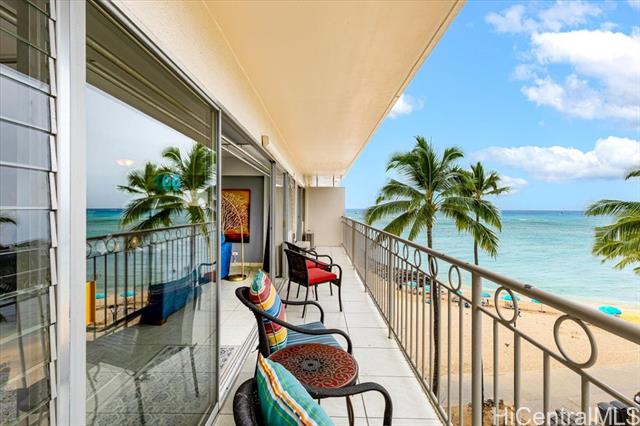 - BEACHFRONT 2 bedroom 2 bath on WAIKIKI Beach. Gorgeous Ocean & Sunset Views. Excellent condition. Fully furnished. Fabulous location. Next to Ft DeRussy Beach Park and across Beachwalk-Great Shopping & Dining. Surfboard rental & eateries in the building too. No need for a car. Legal Vacation Rental. Castle Resorts operates the front desk. Well managed building with low maintenance fees. Large Storage Locker-Great for owners who want to do vacation rental and have a 2nd home.