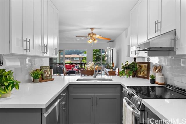 - Enjoy marina-front living in this beautifully maintained 3-bedroom, 2.5-bath townhome in the desirable heart of Hawaii Kai. The home showcases a recently and tastefully renovated kitchen with modern cabinetry, quartz countertops, and stainless steel appliances, along with updated bathrooms that add a fresh, contemporary touch. The functional split-level layout offers comfortable separation of living and bedroom spaces, along with a full-size washer and dryer for everyday convenience. Lanais overlook the tranquil marina, creating the perfect setting for morning coffee, sunset unwinding, and true indoor-outdoor island living. The complex features its own private dock with boat slips available, making it ideal for boating and water enthusiasts. Residents enjoy great on-site amenities including a pool, whirlpool, BBQ area, and recreation spaces, all within a well-kept waterfront community just minutes from shopping, dining, beaches, and outdoor activities that make Hawaii Kai such a sought-after place to live.