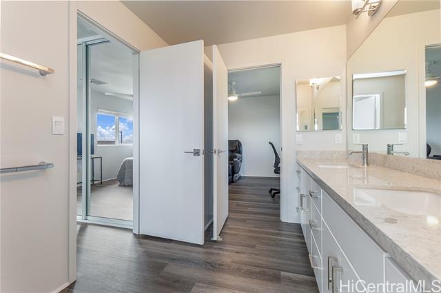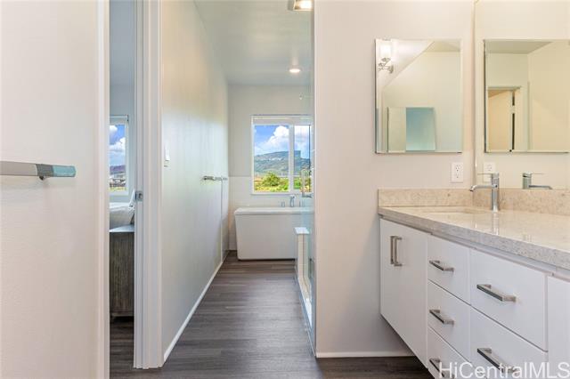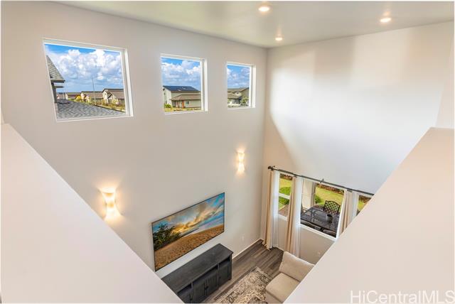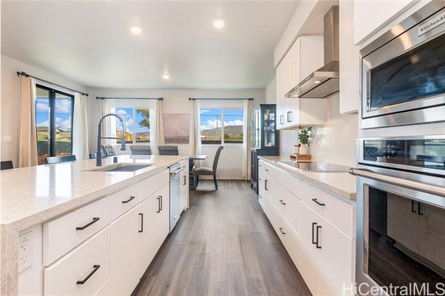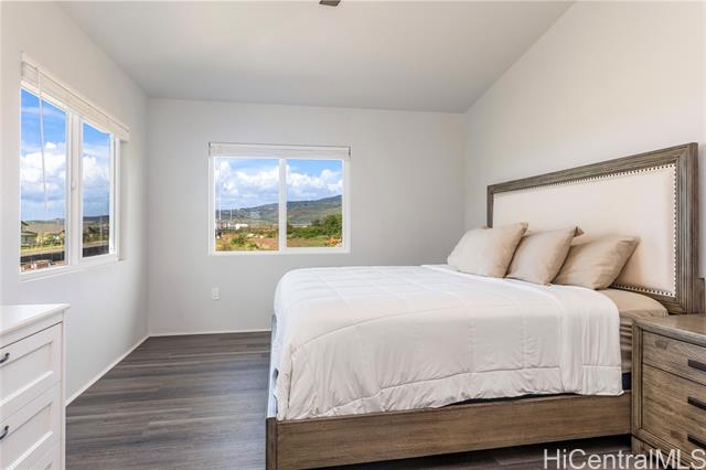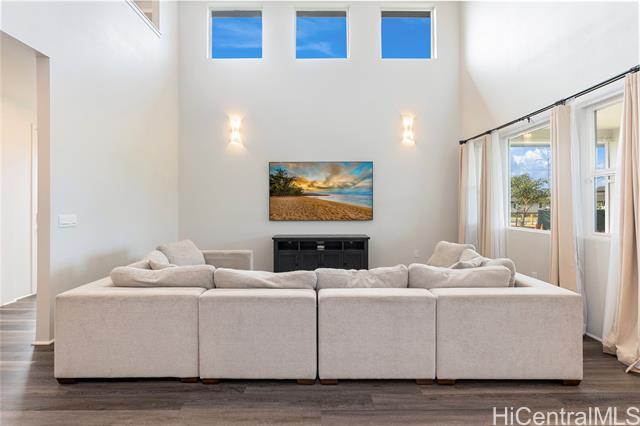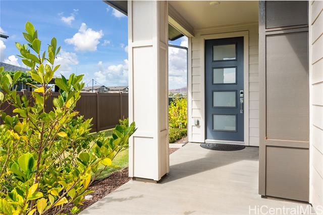 - Rarely available “Bluffs” home in Hoopili located on a desirable cul de sac! This luxurious 4 bedroom, 3.5 bath residence offers 2,372 sq ft of thoughtfully designed living space with an open concept floor plan. Highly sought after layout featuring a full bedroom & bathroom on the 1st floor, ideal for multi-generational living, guests, or a home office. An oversized 2 car garage provides ample room for storage. Step inside to a dramatic 2 story vaulted living room filled with natural light from expansive windows. The gourmet kitchen is a true centerpiece, showcasing a quartz waterfall island, walk in pantry, & stainless steel appliances. The kitchen flows seamlessly into the spacious great room & dining area, creating the perfect setting for everyday living or entertaining. The 1st floor also includes a powder room & dedicated laundry room. Upstairs, you’ll find 3 additional bedrooms, including an impressive primary suite with vaulted ceilings, walk in shower and closet, dual vanities, freestanding soaking tub, & bidet ready seat. Enjoy a beautifully landscaped and fully fenced yard that's ideal for entertaining, pets, or simply relaxing outdoors. Put this on your must see list!