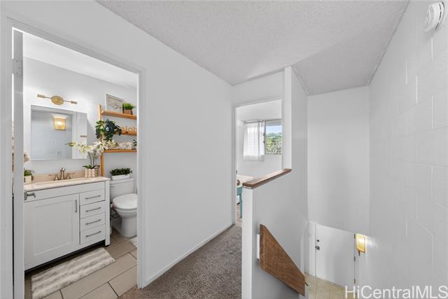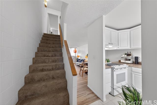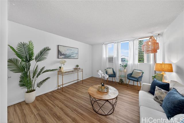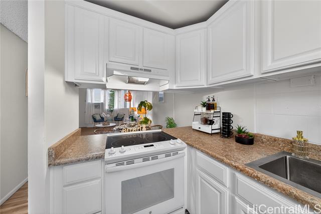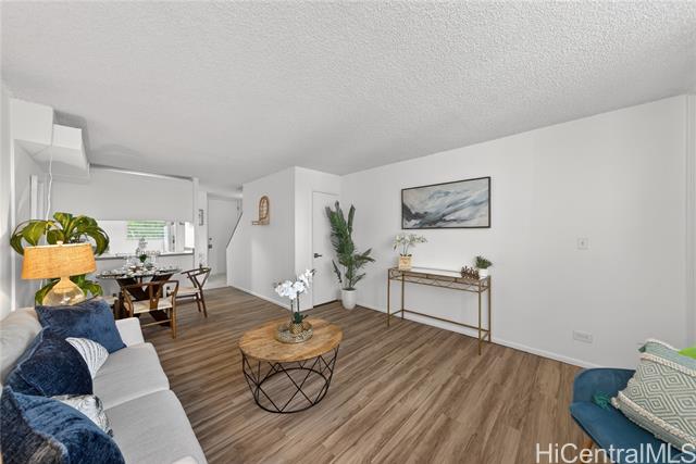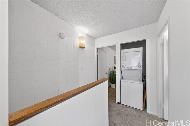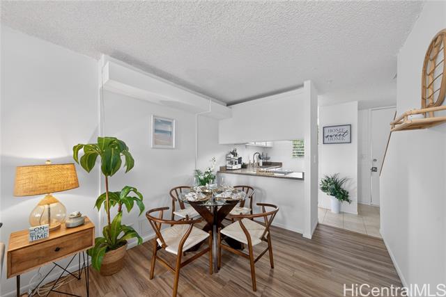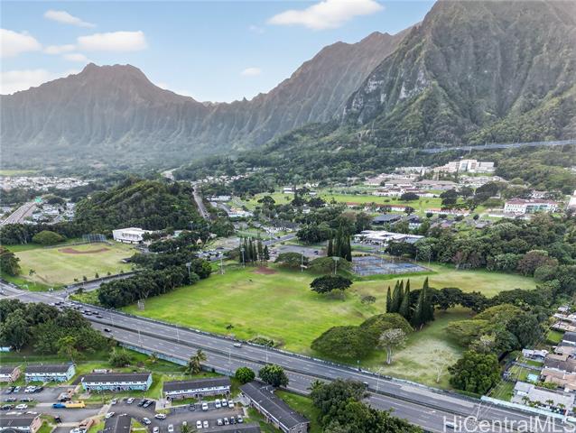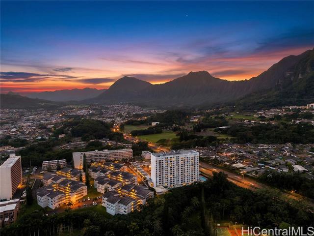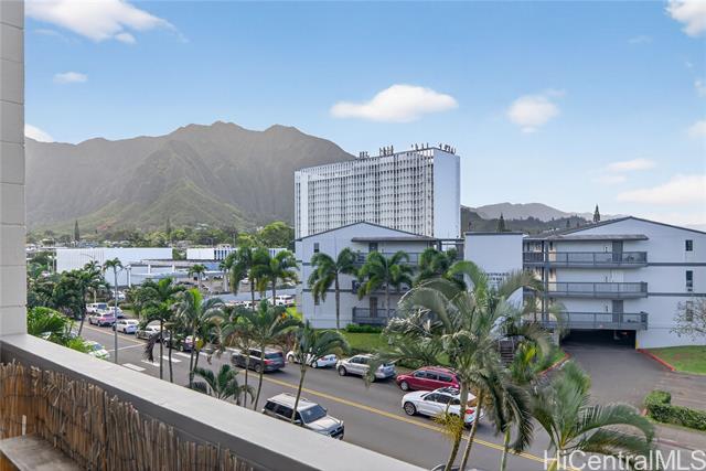 - Experience the best of Windward living in this beautifully renovated 2-bedroom, 1-bath corner condo in lush Kaneohe. This two-level home is filled with natural light & upgraded with luxury vinyl plank flooring throughout. The modern kitchen features contemporary cabinetry, soft-close drawers, deep sink, range with hood, dishwasher & clean finishes designed for both style & function. Fully remodeled bathroom showcases a new tub and shower with tile surround to the ceiling, updated vanity & tile flooring Sound-absorbing carpet enhances comfort on the stairs and landing. Spacious covered lanai with stunning views of the Ko?olau Mountains, enjoy the colors of golden sunsets behind the peaks . In-unit Washer & Dryer, AC & downstairs assigned parking stall & key secured entry with a Property Manager Office & Mailbox Area in the Secured Lobby. Community amenities include a pool, basketball and paddle tennis courts, BBQ areas, car wash bay & trash chute on every level. Located directly across from Kane?ohe District Park & just minutes to Windward Mall, Windward Community College, MCBH, Kailua, H-3, and Likelike Highway. Move-in ready and sure to be your Hawaii Oasis home!