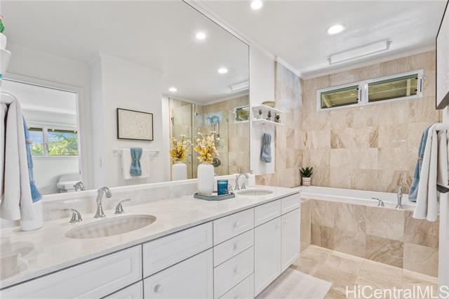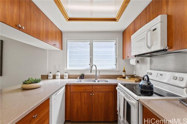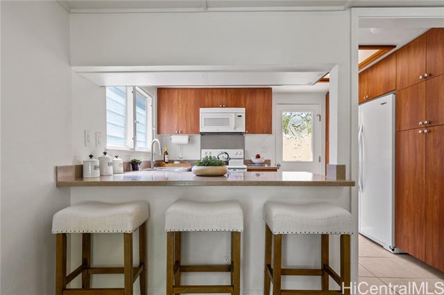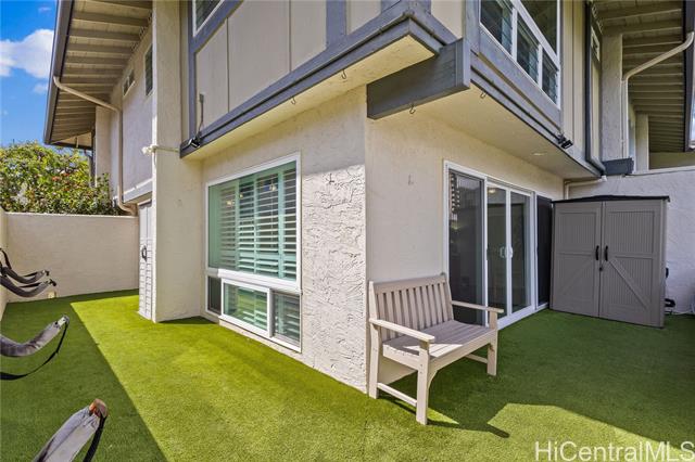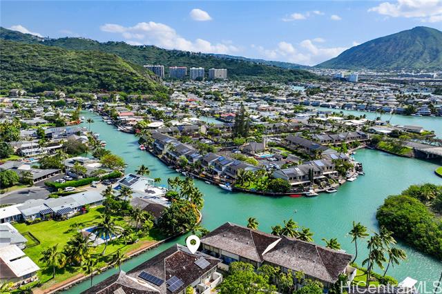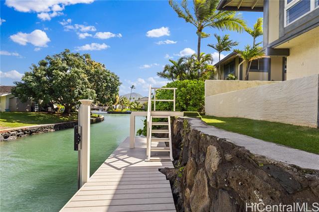 - Corner-end waterfront townhome in the sought-after Gateway Peninsula marina community. This pet-friendly, two-level residence offers approximately 1,850 sq ft with central A/C, a mix of hardwood and tile floors, upgraded windows and doors, plantation shutters, and privacy blinds in the bedrooms. Multiple lanais on the front, side, and rear—finished with stamped concrete and premium turf—enhance outdoor living. Storage is abundant with built-in cabinetry, exterior storage, a wood-finished attic, and two covered parking stalls. Sustainability meets savings with 26 owned, net-metered PV panels resulting in minimal electric expense. Popcorn ceiling removed in February of 2026 for a clean, modern aesthetic. Enjoy immediate access to the marina from your private commercial-grade boat dock, ideal for boating, paddling or kayaking. Community features include a pool, clubhouse, guest parking, and on-site resident manager. Conveniently situated near Kalaniana'ole Hwy, directly across from Maunalua Bay, and close to Costco, Safeway, Koko Marina, dining, beaches, and trailheads. A rare opportunity for waterfront living in East Honolulu.