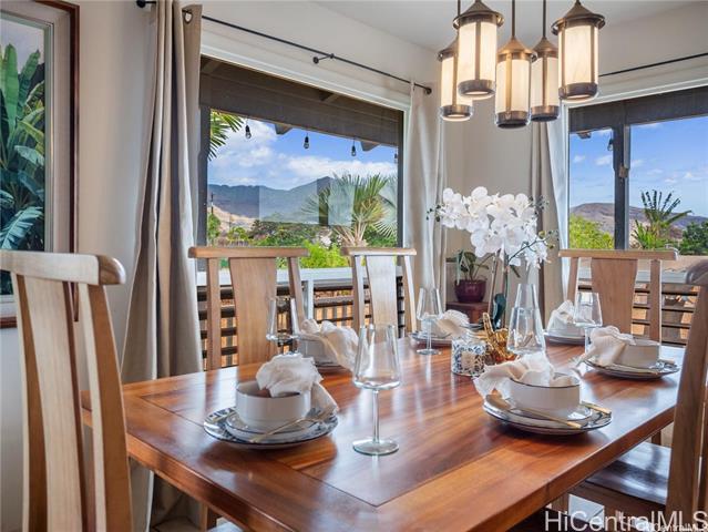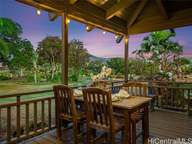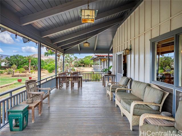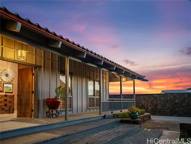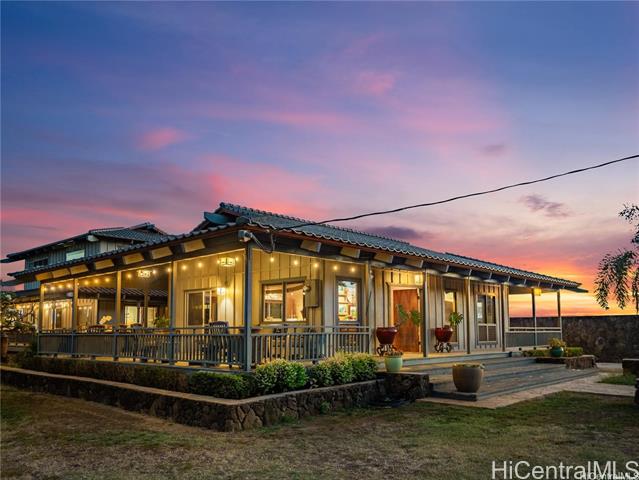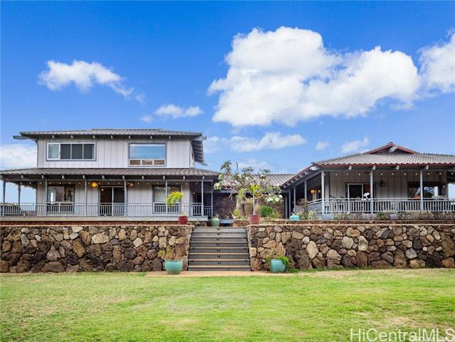 - Retreat Agricultural Oasis on this massive 2.44-acre estate! This 5-bedroom, 2.5-bath valley home with ocean & mountain views can be yours. Rare opportunity for business or living, this property offers nearly 3,000 sq. ft. of living space, surrounded by a quintessential covered lanai reminiscent of Old Hawaii plantation living. Behind the electric gate of the fully fenced custom stone wall a palm-lined, expansive driveway leads to the home. Sustainable agricultural dream, with multiple fruiting trees, aquaponics area, & zoning for income-producing opportunity. Two living & dining areas flow into flexible rooms that can serve as a private office or guest rooms. The spacious upstairs primary suite boasts vaulted ceilings & a picture window framing the lush property, a large en-suite bath, second living room & an office. Additional bedrooms downstairs are well-suited for family, guests, or creative uses. Just minutes from the beach, surf breaks, hiking trails, Tamura’s Market, and a short drive to KoOlina and Kapolei, this rare property combines privacy, convenience, and the charm of country agricultural living. Come experience paradise behind the gates of 87-251 Paakea Road today!