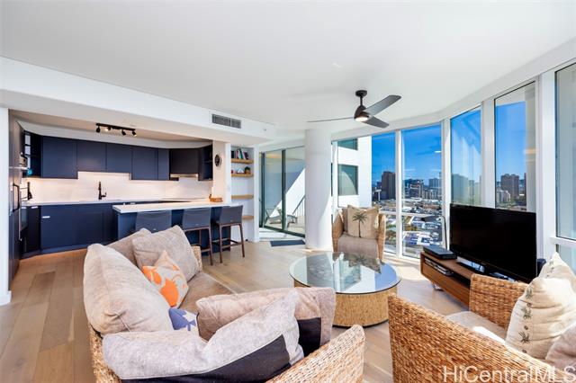- Discover Hawaiki Tower #2309, an exceptional luxury residence situated in the sought-after '09' stack, where panoramic floor-to-ceiling windows draw in views of Diamond Head, Ala Moana Beach Park, and the Pacific Ocean. Meticulously upgraded, this high-end 2-bedroom, 2-bath front-corner residence includes a new luxury kitchen with built-in bar seating, two fully upgraded luxury bathrooms, upgraded flooring, lighting, closet systems, roller shades throughout, bespoke built-ins, high-end fixtures, appliances, upgraded plumbing, electrical, and other upgrades. Well-kept amenities include a grand 3-story lobby area, large infinity-edge pool, tennis court, multiple barbecue areas, kid's play area, and more. Hawaiki Tower's superb location puts beaches, shops, restaurants, entertainment and more just outside your doorstep. Rarely will you find a residence of this caliber, in this coveted location, offered with such exquisite upgrades. Don't miss this extraordinary opportunity to own a piece of paradise at Hawaiki Tower #2309.