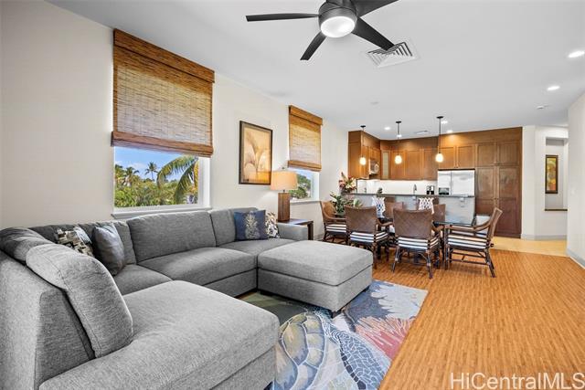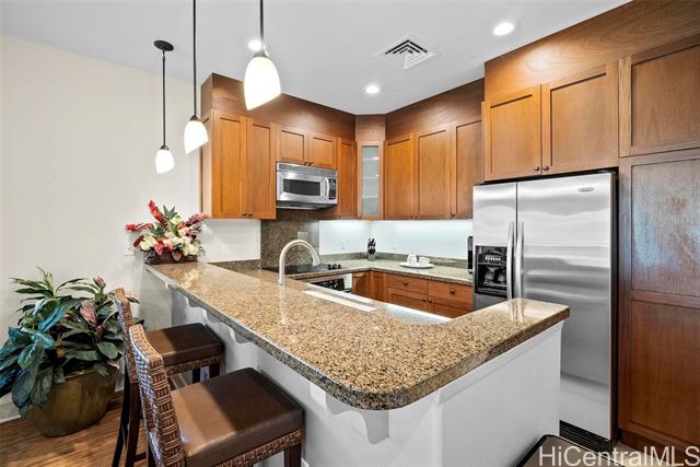 - Welcome to Hali’i Kai 18D at Waikoloa Beach Resort. This desirable 2 BD/2BA upstairs corner condo is 1,317 sqft of single-level resort living. Halii Kai offers some of the best resort amenities including the private oceanfront club restaurant and bar, the oceanfront lagoon pool, oceanfront fitness center, tennis and pickleball courts, mini golf, basketball court and walking trails. Features include a spacious kitchen with upgraded appliances, granite counters, mahogany cabinetry, high ceilings, recently replaced central A/C, Bamboo LVP flooring, a detached 1 car garage plus one deeded space. Sold turn-key furnished. The spacious covered lanai with BBQ is perfect for indoor-outdoor living. Located in the highly desirable gated, oceanfront community of Hali'i Kai, just minutes to Anaeho‘omalu Bay, King and Queen's Shops, assortment of dining options, coffee shops, bike rentals, grocery store & championship golf. Can be used as a primary residence, second home, or vacation rental. This turn-key property blends luxury, comfort, and convenience at Waikoloa Beach.