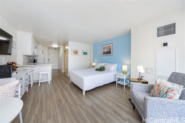 - Situated at the entrance of Waikiki, Ilikai Marina features an exceptional location along Ala Wai Harbor, minutes from Ala Moana Center, Ala Moana Beach Park, and everything Waikiki offers. Step inside this bright studio + 1-bath floor plan and discover a well-kept interior that shows beautifully. Featuring updated flooring, lighting, kitchen and bathroom cabinetry and counter-tops, this move-in ready residence is a must-see. From the interior and lanai spaces, enjoy partial views of the Koolau mountains. Located a short distance from the Hilton Hawaiian Lagoon and all-things Waikiki, this condominium residence offers a sought-after island lifestyle in the heart of Honolulu, with access to sandy beaches, nearby shops, restaurants, and entertainment.