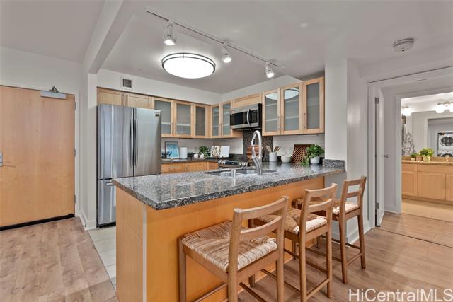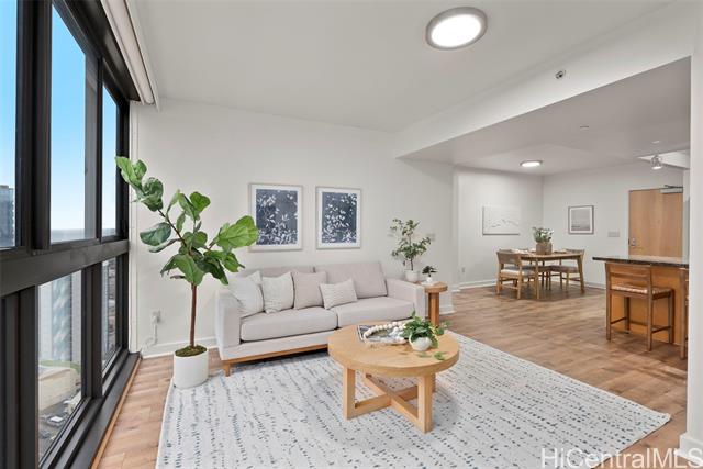 - NEW LISTING!! Welcome home to this beautifully maintained 2 bdrm/2 bath/2 parking residence in Keola Lai, where comfort meets convenience in the heart of Kakaako. Featuring laminate flooring and a desirable open-concept floor plan, this home offers a seamless flow perfect for everyday living and entertaining. Expansive floor-to-ceiling windows in the living room flood the space with natural light while showcasing stunning mountain, city and ocean views, creating a bright and inviting atmosphere throughout. Keola Lai offers resort-style amenities including a sparkling pool & whirlpool spa, fitness center, BBQ areas, and 24-hour security, all within minutes of SALT, Ward Village, dining, shopping, and Ala Moana Beach Park. Don’t miss this fantastic opportunity!