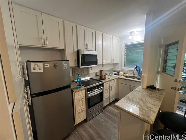 - Located on one of the most desirable residential streets in Waikiki, this charming two-story walk-up offers classic 1960s Hawai‘i character in a quiet, shaded garden setting. This 1-bedroom, 1-bath condo features 420 sq ft with an efficient layout and naturally cool ambiance. Exceptionally low HOA of $378/month — among the lowest in Waikiki. 28-day minimum rentals allowed (Airbnb eligible per guidelines), offering flexibility for part-time living or investment. All comments, data is provided by seller or seller's representatives. Buyer to confirm all & hold all parties harmless from any discrepancy data in the mls and advertising. Limited Service–Data Entry Addendum signed by seller/s must be signed by buyer/s with Purchase Contract.