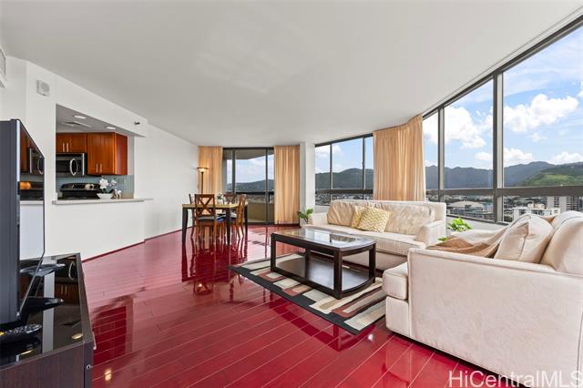 - From its high-floor position, this 3-bedroom, 2-bath residence captures iconic Diamond Head views alongside sweeping city, mountain, and sunrise vistas. With 1,168 sq ft of interior living and a private lanai, the thoughtfully designed layout offers generous, light-filled spaces and comfortable single-level living above the heart of Honolulu. Two covered, secured side-by-side parking stalls provide exceptional convenience in this sought-after Metro location. Maintenance fee includes central AC, electricity, cable TV, internet, and hot water, delivering both value and everyday ease. Enjoy a true amenity-rich lifestyle with pool, tennis court, recreation areas, BBQ, walking paths, whirlpool/spa, and security. Ideally located along Kapiolani Blvd adjacent to Iolani School and near Ala Wai Elementary, with quick access to Ala Moana, Waikiki, UH, shopping, and dining.
