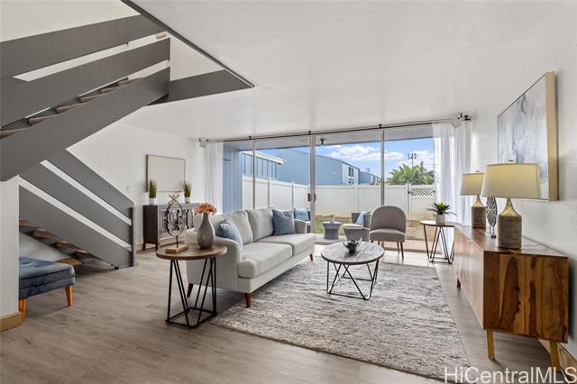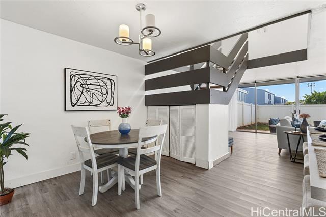 - This is Living! and your opportunity to live and own in the highly desirable Laulea Town Houses. This spacious 3 bed, 2.5 bath townhome has over 1,400 square feet with a remodeled kitchen, new vinyl plank flooring and more! This home offers modern style, smart flow, and a prime Mililani location. Literally steps from Kipapa Elementary School and nearby parks makes this perfect for families and outdoor enthusiasts. The bright open living and kitchen area boasts stainless steel appliances and seamlessly flows out to a spacious fenced outdoor space that’s ideal for entertaining, play, or pets. 2 parking stalls (1 covered) and quick access to shopping, schools, restaurants, Freeway and Schofield. This home is priced to sell and schedule your showing today!