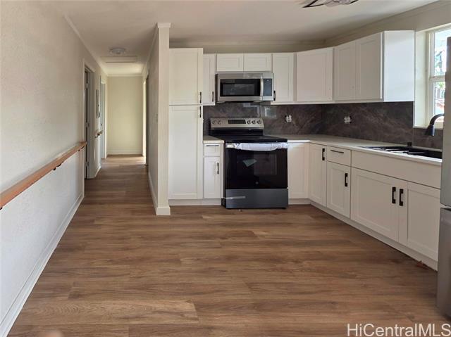 - Nicely renovated 3-bdrm, 1-ba accessible single-level home with ramp entry, extra-wide doorways, and mobility-friendly layout, situated on an oversized 8,300+ sq ft lot - one of the larger parcels in the surrounding area. Located within walking distance to ocean, the property offers functional living today with flexibility for outdoor use and future possibilities for expansion or reconfiguration, subject to buyer due diligence. The interior has been thoughtfully upgraded with new flooring throughout, refreshed finishes, and a modernized kitchen featuring updated cabinetry, countertops, and stainless steel appliances. The property's expansive front, side and backyard areas provide for a wide range of uses. Row of papaya trees along one side of house. Lots of parking within the property as well as outside at property frontage. Concrete improvements are in the works for portions of the entry and driveway. Come and consider this opportunity that is well suited for owner occupants, care-related residential use or investment. Buyer's due diligence advised. Seller will provide latest staking and termite report to buyer.