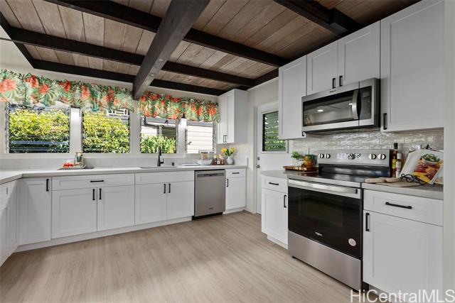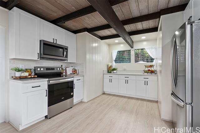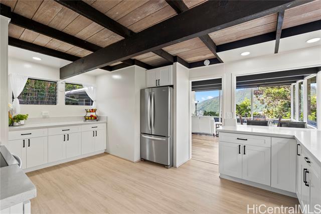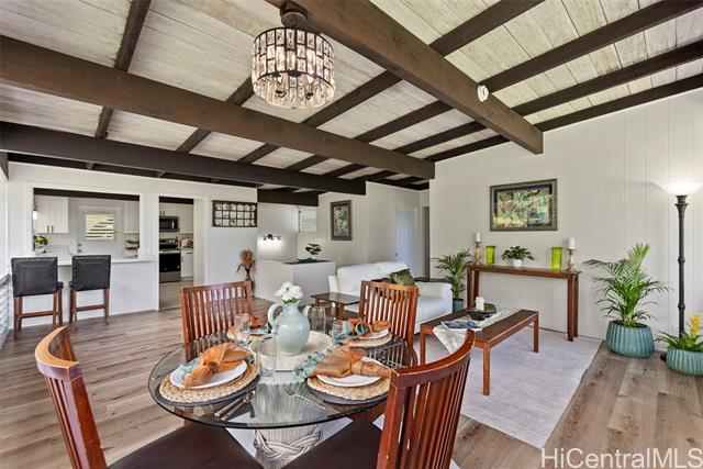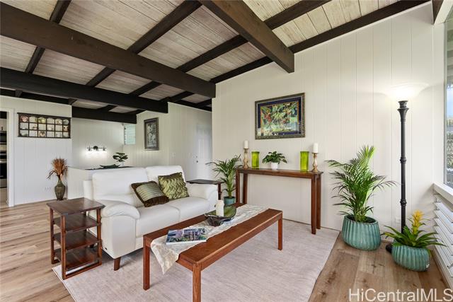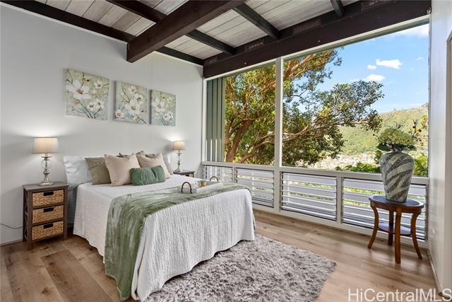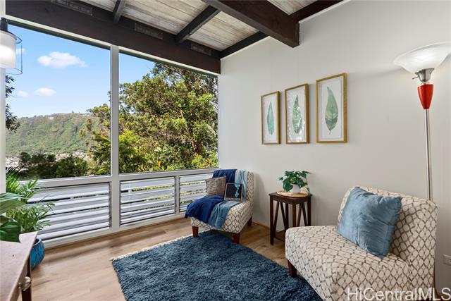 - Nestled in the highly sought-after Manoa-Woodlawn neighborhood, this well-maintained and thoughtfully upgraded home, designed by renowned architect Harry Seckel, offers breathtaking views and cool trade wind breezes. The spacious 10,002 square foot lot features lush landscaping, an expansive lawn, and scenic mountain vistas, creating a peaceful and private natural setting. Inside, vaulted ceilings, exposed beams, and an open-concept layout allow abundant natural light to fill the home. The updated kitchen is equipped with new stainless steel appliances, beautiful new countertops, and ample cabinetry. Additional improvements include new flooring, new light fixtures, and fresh interior and exterior paint. This unique four-bedroom, two-bath residence combines architectural character with modern updates in one of Manoa’s most desirable hillside settings. Come experience the stunning views for yourself.