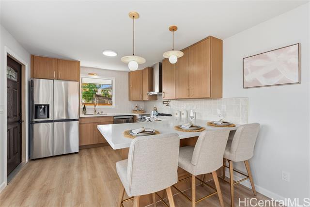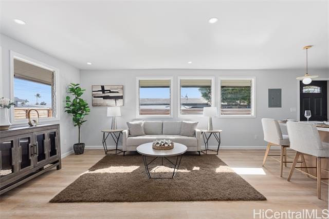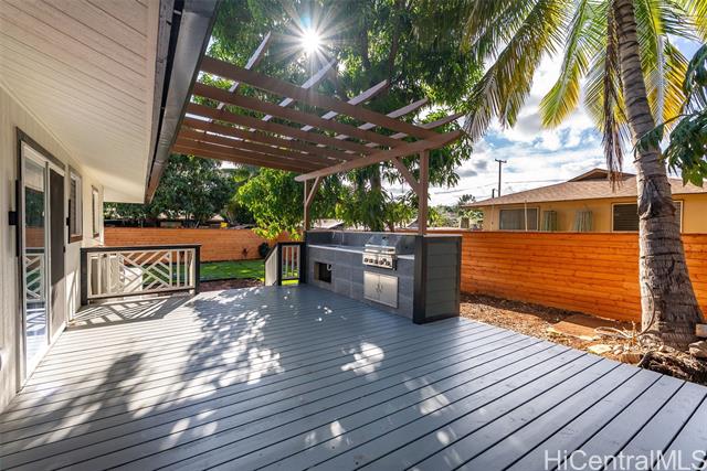 - Enjoy island living in this beautifully remodeled home in Ewa Beach, just two blocks from the ocean and Oneula Beach Park. Situated on a spacious 6,000+ sq ft level lot, this property offers the perfect blend of comfort, convenience, and outdoor living. The home features a brand new roof, newly installed privacy fence, new aluminum carport, all new appliances, and beautiful finishes throughout. The new deck includes a built-in grill and sink, making it perfect for outdoor BBQs and entertaining. The huge yard provides plenty of space to garden, play, or create your own outdoor oasis. Parking is abundant with room for 3+ cars in the carport and driveway. No HOA and no maintenance fees!