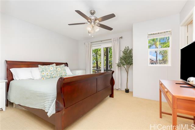 - VA ASSUMABLE available to eligible VA buyers! Discover this well-maintained townhome in the sought-after Ka Makana @ Hoakalei community. On the ground floor, you'll find a bedroom with a full bathroom, as well as the kitchen, dining, and living areas. Step outside to your private covered lanai and yard, which lead to a two-car enclosed garage and a separate laundry room. A walking/jogging path is conveniently accessible right from your front door. Inside, enjoy the comfort of central AC, while the new vinyl plank flooring throughout the living, dining, and kitchen areas adds a modern touch. Upstairs, two additional bedrooms each feature their own ensuite bathrooms, with the primary bathroom offering dual vanity sinks and a walk-in closet. This home is located minutes from Wai Kai Lagoon, Ka Makana Ali‘i Mall, shopping centers, restaurants, banks, and grocery stores. Monthly fees cover Spectrum Internet, Cable, and Phone services, along with sewer/water, common area maintenance, and access to the swim club/fitness center. Ka Makana at Hoakalei also offers multiple parks and green spaces, perfect for outdoor recreation.
