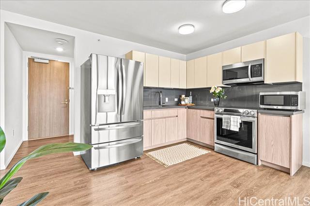 - Perched high above the city in Kapiolani Residence, Unit 3603 delivers elevated island living in a sleek, modern new build designed for today’s lifestyle. Clean lines and floor to ceiling windows frame sweeping city views, while a smart, efficient layout makes every square foot feel purposeful. Enjoy the comfort of split AC, the ease of an in unit washer and dryer, and the convenience of EV charging in the building, all paired with refreshingly low maintenance fees that keep ownership simple and cost effective. Secure parking, thoughtful amenities, and a well managed community. You are minutes from Ala Moana, Ward Village, beaches, dining, shopping, and major medical centers, yet at home you are elevated above the energy. From sunrise coffee on the lanai to glowing sunsets, this home invites you to slow down and enjoy the view. The amenity deck offers space to gather and grill, and the central location keeps commutes short and weekends wide open. Move in ready and beautifully efficient, Unit 3603 is ideal for full time living, a lock and leave lifestyle, or a smart investment. This is modern Honolulu living done right, with lasting easy upkeep, and everyday convenience.