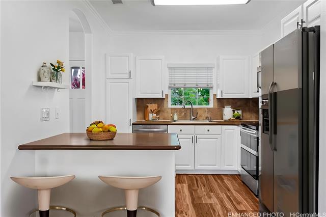 - PRICED TO SELL AT $136K BELOW TAX ASSESSED VALUE! Welcome to the beautiful Town Homes at Fairways Edge in the highly-desirable community of Ocean Pointe! Upon entrance you'll fall in love with the bright, open, spacious floor plan that feels like a single-family home. Numerous features make this home an easy choice for any buyer looking for a great deal on an almost-turnkey property requiring a little TLC. Features include newer central a/c system (2019), newer flooring in some areas, refurbished kitchen cabinets, newer appliances (2020), paint and so much more! Park and store your household goods in the detached 2-car garage. Relax on the back lanai in the privacy of your own yard or head over to the nearby pool and BBQ with friends. With close proximity to the new Wai Kai lagoon resort, plus beaches, golfing, shopping and dining, you'll experience the best of Hawaii living at an unbelievable price! Don’t miss this opportunity to make this beautiful home yours!