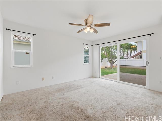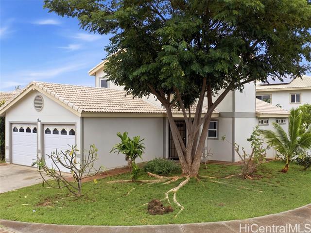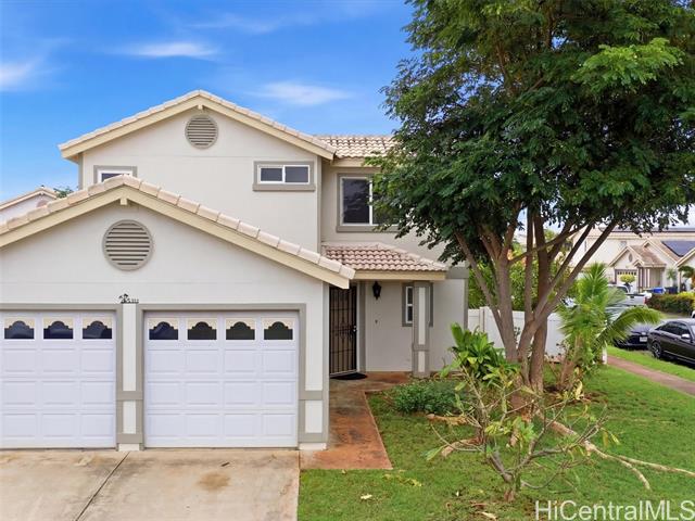 - 1st PUBLIC OPEN HOUSE 3/22 2-5pm!! Large single-family home located in the desirable Ewa Gentry Trovare community. This well-maintained residence offers 4-bedrooms and 2.5 bathrooms with approximately 1,569 sq ft of interior living space, thoughtfully designed for comfortable family living and room to make it your own. The functional floor plan includes a primary bedroom and full bathroom on the first floor, ideal for guests or multi-generational living. Situated on a generous corner lot of over 5,000 sq ft, the home features inviting living areas, in-unit laundry, mature landscaping, a convenient storage shed and fruit trees throughout. Low HOA dues of just $50 per month, with the option to purchase an annual Ewa Gentry Community Center membership for $100, add exceptional value and lifestyle appeal.