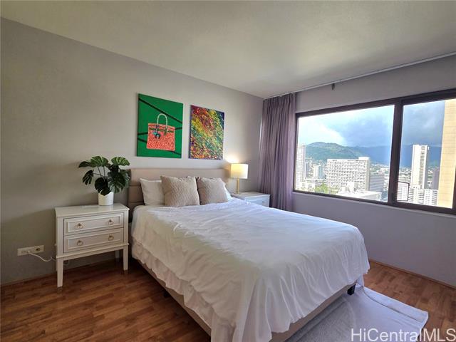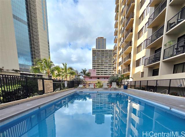 - Live, play, and enjoy the prime location of this beautiful condo in the heart of Waikiki. Situated on the cooler, quieter side of the building, this residence offers peaceful living with refreshing tradewinds and added privacy. Enjoy serene views of the mountains, golf course, and marina from your private lanai — the perfect setting for your morning coffee or relaxing evenings. The open layout is filled with natural light and designed to capture the scenic surroundings, creating a comfortable and inviting atmosphere. Whether you’re looking for a primary residence, vacation getaway, or investment property, this condo offers exceptional versatility in one of Honolulu’s most desirable neighborhoods. Resort-style amenities include a swimming pool, BBQ area, sauna, and whirlpool — ideal for entertaining or unwinding after a day at the beach. This pet-friendly building adds even more convenience for those with furry companions. Just minutes from world-famous beaches, shopping, dining, parks, and entertainment, this is island living at its best.