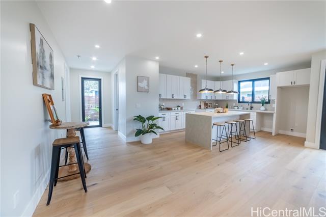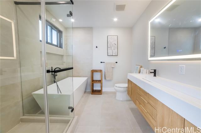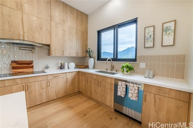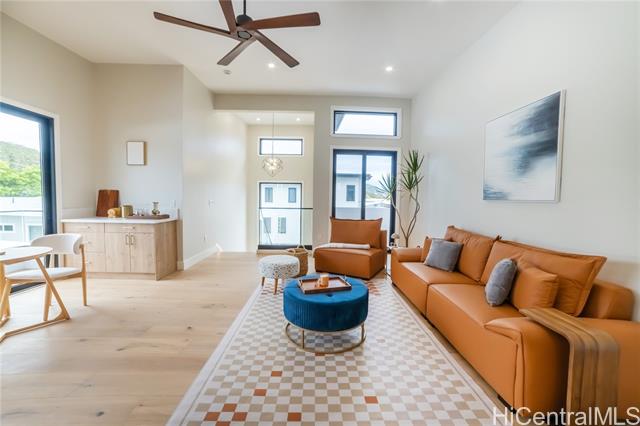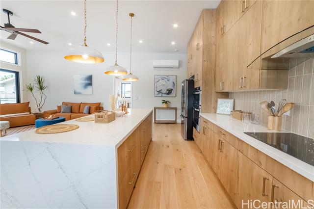 - Experience modern island living in this newly constructed contemporary home in the heart of Kailua. Thoughtfully designed with soaring ceilings and an open floor plan for multi generational living. This residence blends upscale finishes with relaxed coastal style. The spacious great room and designer kitchen form the centerpiece of the home, featuring custom cabinetry, a waterfall island, and warm wood textures that elevate the space. Expansive windows and sliding doors invite natural light and ocean breezes throughout, creating an airy indoor-outdoor flow ideal for entertaining. Offering multiple living and dining areas, the layout provides flexibility for multi-generational living, guests, or remote work. The private primary suite delivers a luxurious retreat with generous volume, modern fixtures, and serene views. Additional bedrooms are well-sized with ample storage. Brand new construction. Modern design. Prime location. A rare opportunity to own a thoughtfully built home!