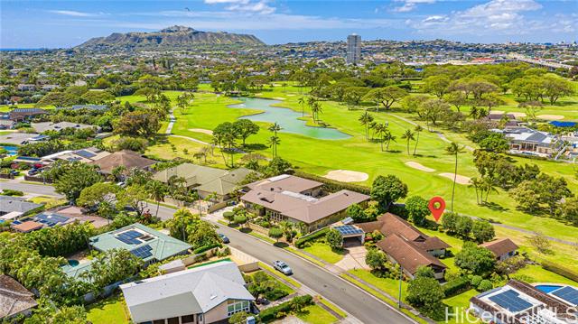 - First time on the market in close to 50 years, this property presents a generational opportunity in one of Honolulu’s most desirable neighborhoods. Featuring an impressive 130.5 linear feet of frontage along the Waialae Golf Course, the property sits on a generous 14,213 sq ft level lot with open green views of the 11th and 12th holes. The residence offers 5 bedrooms, 2 baths, and approximately 3,418 sq ft of interior living space, including a detached 364 sq ft recreation room. Sixteen photovoltaic panels are installed on the garage for added energy efficiency. With its spacious footprint and flexible layout, the home provides an exceptional canvas for renovation, expansion, or the creation of a custom dream estate. Enjoy the privacy and serenity of golf course living while being just minutes from beaches, shopping, dining, and town conveniences. Rarely do properties with this combination of lot size, frontage, and location become available. Property to be sold AS-IS.